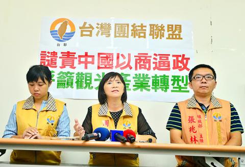 Taiwan Solidarity Union (TSU) members yesterday condemned China for manipulating the tourism market in a bid to coerce Taiwan ahead of a planned protest by travel operators today, saying the tourism industry needs to reform and break away from overdependence on China.