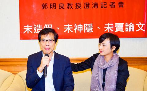 National Taiwan University (NTU) professor Kuo Min-liang (郭明良), who has been fielding accusations related to forged research since last month, held a news conference in Taipei yesterday to speak publicly for the first time about the allegations.