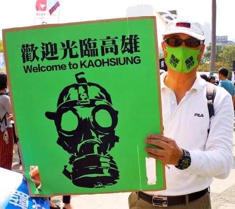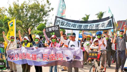 Among the protesters in Taichung were members of the Taiwan Clean Air Network and other environmental groups, Yunlin County Commissioner Lee Chin-yung (李進勇) and Chiayi Mayor Twu Shiing-jer (涂醒哲).