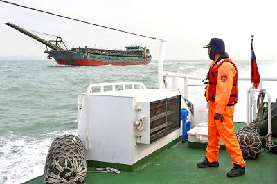 Coast guard commander Lin Chie-ming is on the front line of a new type of warfare that China is waging against Taiwan. On a chilly morning late last month, Lin, clad in an orange uniform, stood on the rolling deck of his boat as it patrolled in choppy waters off the Matsu Islands. A few kilometers away, the Chinese coast was faintly visible from Lin’s boat. He was on the lookout for Chinese sand-dredging ships encroaching on waters controlled by Taiwan. The Chinese goal, Taiwanese officials say, is to pressure Taiwan by tying down its naval defenses and undermining the livelihoods of