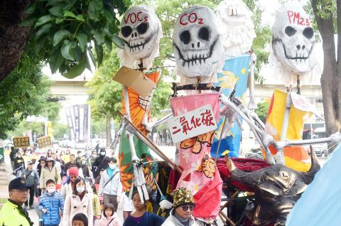 The parade in Kaohsiung attracted about 3,000 participants, organizer and Southern Taiwan Anti-Air Pollution Alliance convener Chen Jiau-hua (陳椒華) said.