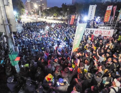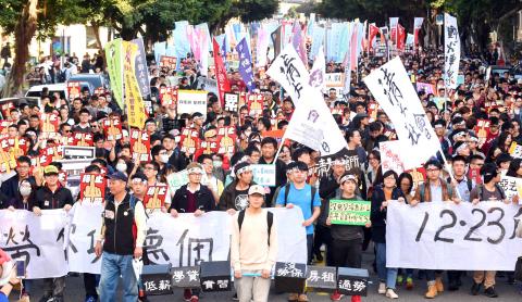 Since the Cabinet announced the draft amendment on Nov. 9, many labor rights groups have been protesting against what they said is the most retrogressive amendment to the act, which was pushed to a second reading by DPP lawmakers on Dec. 4.