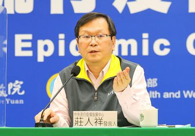 QUARANTINED: Three of the six patients had low cycle thresholds, suggesting recent infections, even though they had provided negative PCR tests, Chuang Jen-hsiang said The Central Epidemic Command Center (CECC) yesterday reported six imported cases of COVID-19 — from Indonesia, the Philippines, the UK and the US — three of whom showed symptoms in Taiwan. Centers for Disease Control (CDC) Deputy Director-General Chuang Jen-hsiang (莊人祥), who is the CECC’s spokesman, said one of the cases is a British man in his 30s who arrived in Taiwan for work on Wednesday. Upon arrival, he reported having mild nose congestion that started on Monday, so he was tested for COVID-19 while staying at a centralized quarantine facility and his result came back positive yesterday, Chuang said. Two British colleagues