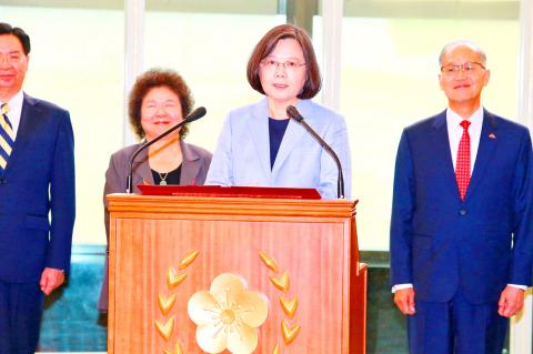 “In going abroad, the whole world can see Taiwan; they can see our nation as well as our support for democracy and freedom,” Tsai said. “We only need to be firm so that no one can obliterate Taiwan’s existence.”