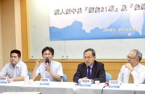 The poll found that 60.9 percent of respondents knew about China’s residency cards for Taiwanese, while only 42.9 percent said they knew about the so-called “31 incentives” aimed at attracting Taiwanese professionals and businesses unveiled by China’s Taiwan Affairs Office in February.