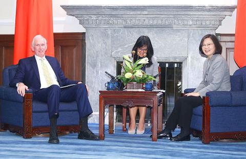 Moriarty, who arrived in Taiwan on Sunday for a week-long visit, made the remarks at a meeting with President Tsai Ing-wen (蔡英文) at the Presidential Office.