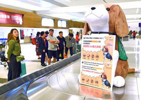 Additional measures have been put in place at Kinmen airport to remind travelers of the ban, which is to last until Jan. 16, including stricter immigration clearance checks with X-ray machines and sniffer dogs, bureau official Fu Hsueh-li (傅學理) said.
