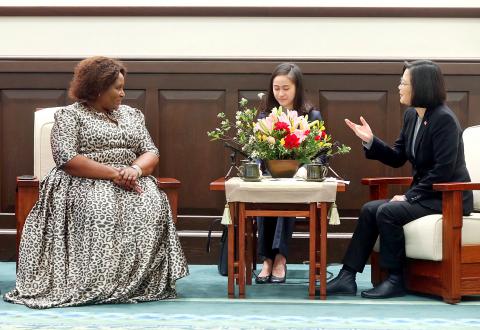 Swazi Minister of Foreign Affairs and International Cooperation Thulisile Dladla, who arrived in Taiwan on Sunday for a five-day visit, met with Tsai at the Presidential Office Building in Taipei yesterday morning.