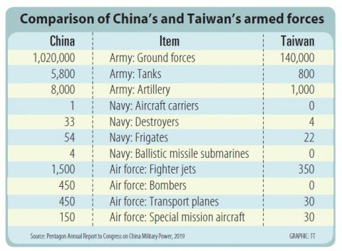 The report identified three possible forms of Chinese aggression toward Taiwan: large-scale missile attacks, limited attacks by precision-guided munitions or an amphibious assault, Chinese-language Military Link Magazine editor-in-chief Chen Wei-hao (陳維浩) said.
