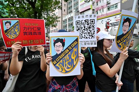 In a statement issued last night by her office, Hong Kong Chief Executive Carrie Lam (林鄭月娥) apologized to the public with “utmost sincerity and humility,” after the second massive protest in a week over a proposed extradition bill that would allow people to be sent to mainland China for trial.