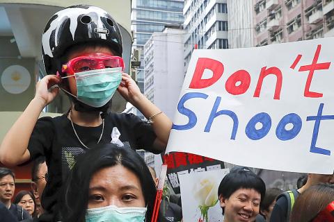 The police presence yesterday was considerably more relaxed, with officers deployed mainly to direct traffic as the protesters wound their way through Hong Kong’s commercial center from a sprawling downtown park to government headquarters.
