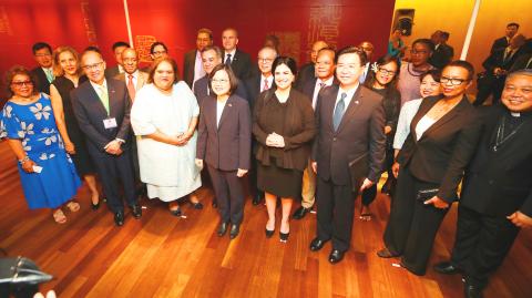 President Tsai Ing-wen (蔡英文) on Thursday met with several representatives to the UN in New York, where she was making a two-day stopover en route to the Caribbean.