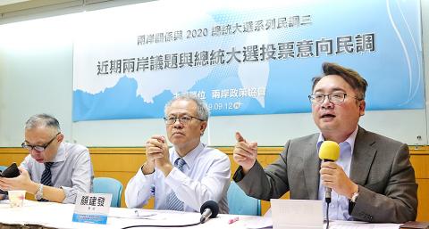 Up against just Chinese Nationalist Party’s (KMT) presidential nominee, Kaohsiung Mayor Han Kuo-yu (韓國瑜), Tsai would win the election by 16.4 percent, with the two candidates claiming 50.1 percent and 33.7 percent of the vote, the poll showed.