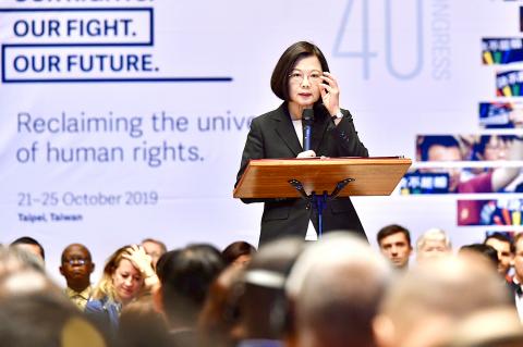 In a speech at the opening ceremony, President Tsai Ing-wen (蔡英文) said the government is committed to improving human rights protection in a wide range of areas.