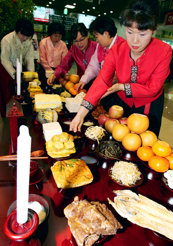 Bamboo sticks are burnt in the house on New Year's eve. The cracking when the knots in the bamboo burn scares away the evil spirits of the old year. Just like in Taiwan, people wear new clothes on New Year's day — but they are normally the traditional costumes called han bok.