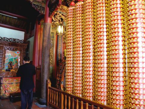 The abbot of the Grand Guanyin Pavilion Sing-ji Temple in Tainan City says that the economy really is showing signs of recovery, as people coming to the temple to pray to Taisui are no longer nit picking over the fees. Over the past two years worshippers have been asking for group discounts, or asking whether they could just light one lantern for their whole family.