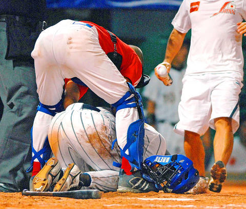 Toshiyuki Hayashi, 28, a pitcher and batter, was hit by a pitch from Cuba's Aroldis Chapman de la Cruz during the 7th inning of the semi-finals at the Shinchuang Stadium outside Taipei.