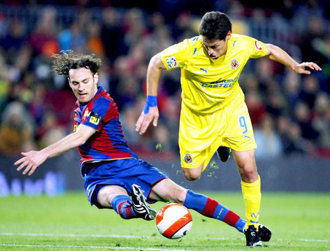 Xavi Hernandez looked to have snatched a point for Barca after he cancelled out Marcos Senna's first half penalty but Danish substitute Tomasson struck the winner nine minutes from time.