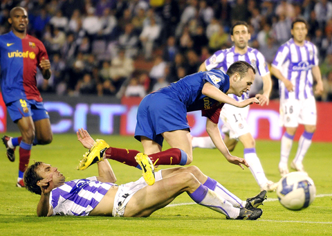 Barcelona began the game with Lionel Messi and Thierry Henry on the bench but while they controlled the game they struggled to create openings. That was until Eto’o coolly beat the Valladolid keeper shortly before half-time with a match-winning lob.