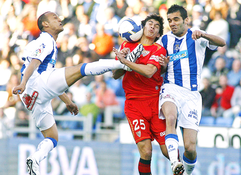 Sevilla consolidated their third place with an important 1-0 win away to Recreativo Huelva courtesy of a Frederic Kanoute penalty after 33 minutes.