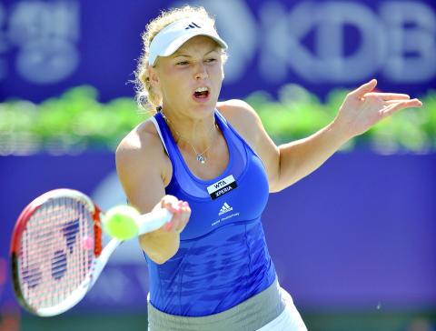Former world No. 1 Caroline Wozniacki dropped just one game against Kaia Kanepi in the lop-sided final of the Korea Open yesterday for her first WTA title of the year.