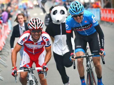 Joaquim Rodriguez, left, of Spain and Daniel Martin of Ireland compete in the Liege-Bastogne-Liege race in Belgium on Sunday.