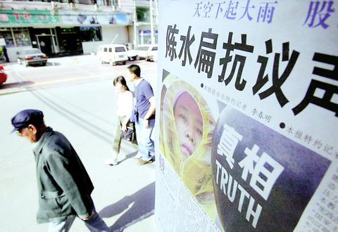 "Chen Shui-bian's speech cannot cover up true intent of Taiwan independence," read a headline in the Beijing News, which had a photo of an anti-Chen protester.
