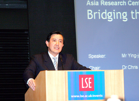 He gave a speech on cross-strait relations during the reception on Sunday. The reception was organized by the KMT's UK branch, the Sun Yat-sen Association and the Republic of China Women's Association in the UK.