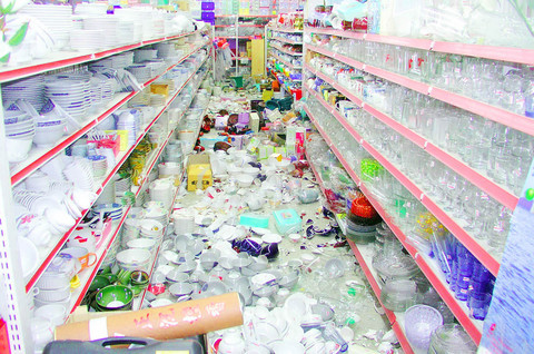 Fallen and smashed goods were strewn along the aisles of convenience stores in the Taitung area.