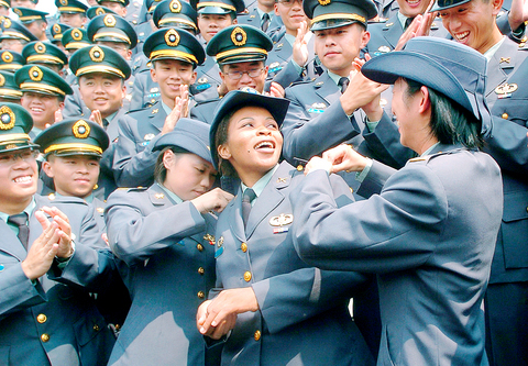 A female cadet from Malawi stood out among graduating students in a joint commencement ceremony held for seven military academies in Taipei yesterday.