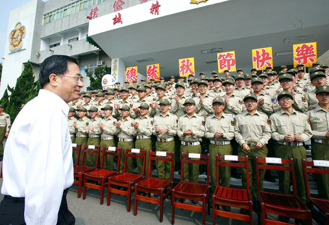 In his capacity as commander-in-chief, Chen visited Air Force Operations Command in the company of Minister of National Defense Lee Jye (