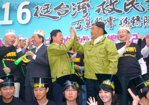 The DPP has asked its supporters to attend a campaign rally, dubbed "Million People High Five, Come-back Win" to wear their baseball caps backward, flash the thumbs-up sign and exchange high fives.