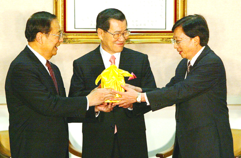 Chang Chun-hsiung (張俊雄) handed over premiership to Liu under the supervision of Vice President Vincent Siew (蕭萬長) at the Executive Yuan yesterday.