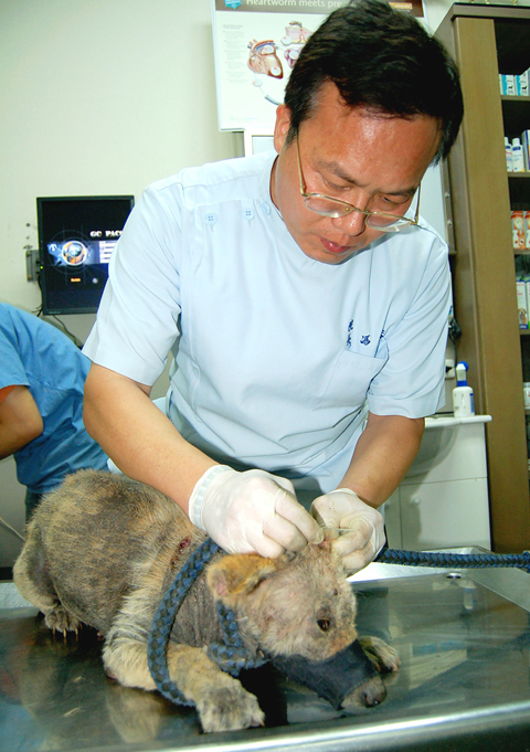 Veterinarian Feng Tzung-hung (馮宗宏) said that all six dogs were suffering from a type of mange called demodicosis, scabies and chronic dermatitis and were infested with fleas and ticks.