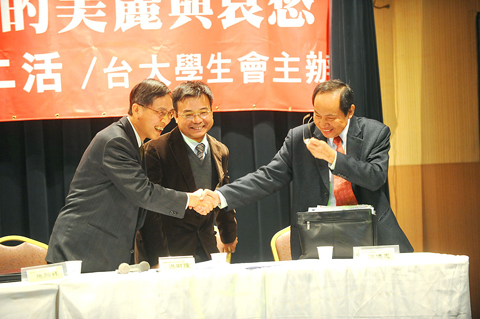 “We regret that Wu, an NTU alumnus, declined to accept our challenge to a debate on an ECFA,” NTUSA spokeswoman Jane Tang (唐家婕) told reporters outside the forum yesterday. “Wu said that the Minister of Economic Affairs may be more knowledgeable on the issue, but we think an ECFA is not only about economic issues and Wu should be the person who knows most because he is the head of the government.”