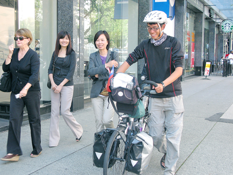 Twenty-eight-year-old Taiwanese Wu Shih-chang (吳時暢), who embarked on an around-the-world bicycle tour as a way to celebrate his 30th birthday, has recently reached Vancouver, Canada after starting his tour in Alaska on June 1.