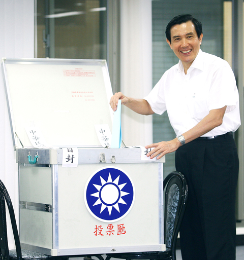 In his capacity as KMT chairman, Ma yesterday cast a vote in the CSC election and said the vicious tradition of bribery in CSC elections had abated in this year’s election.