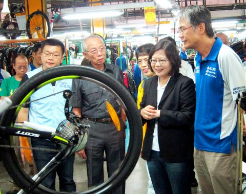 Democratic Progressive Party (DPP) Chairperson Tsai Ing-wen (蔡英文) yesterday lauded Giant Bicycle as a model for Taiwanese businesses and touted the development of “local economies” as a crucial factor in turning the economy around.
