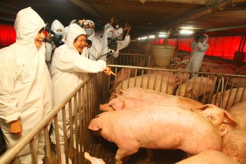 “Being a mature and rational party, the DPP does not encourage pig farmers to take to the street and still prefers to solve the issue through negotiations,” DPP acting chairperson Chen Chu (陳菊) said in Douliou (斗六), Yunlin County. “But we will not sit by and watch them suffer if that [staging a protest] is their final decision.”