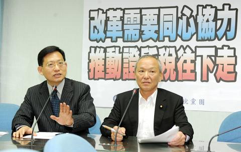 Officials who attended the meeting included Deputy Finance Minister William Tseng (曾銘宗), KMT Secretary-General Lin Join-sane (林中森), Executive Yuan Secretary-General Lin Yi-shih (林益世), Taxation Agency Director-General Sheu Yu-jer (許虞哲), Financial Supervisory Commission Chairperson Chen Yuh-chang (陳裕璋) and KMT legislators.