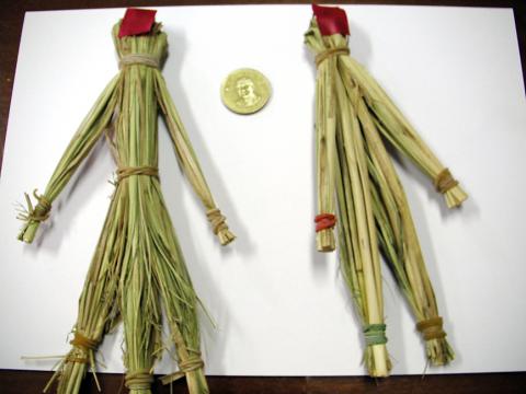 On the morning of Sept. 16, the neighbor, an 80-year-old grandmother surnamed Huang (黃), of Chiayi County’s Lioujiao Township (六腳), found two little straw dolls, each about 20cm in height, placed on either side of her front door.