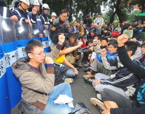 “I’m sorry that I cannot lead you all inside and see Premier Sean Chen (陳冲), but we must disperse because I cannot bear to see you stand here freezing and getting hurt,” he said to the protesters. “We have to leave this place now, but it is only the beginning. This is not our last battle.”