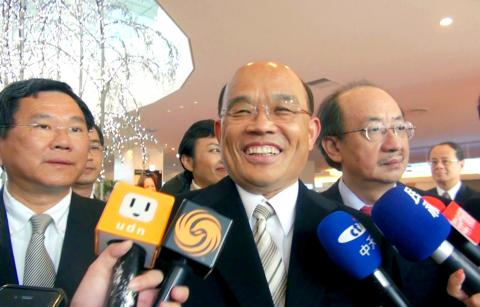Speaking to reporters at Taipei International Airport (Songshan Airport) yesterday morning, Su said he was to meet with Japanese politicians and academics to discuss a wide range of issues, but declined to confirm if the territorial dispute over the Diaoyutai Islands (釣魚台) — known as the Senkakus in Japan — would be included.