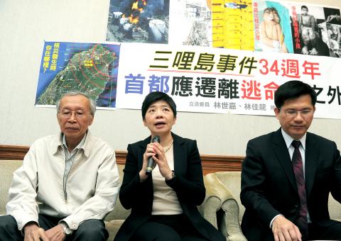 Taiwan Solidarity Union Legislator Lin Shih-chia (林世嘉) and Democratic Progressive Party Legislator Lin Chia-lung (林佳龍) yesterday proposed that the nation’s capital be relocated outside the “evacuation zone” in the 50km radius around operational nuclear power plants.