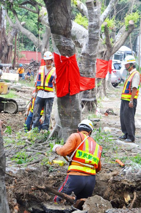 The New Taipei City’s (新北市) Public Works Department said in a press release that it was conducting the tree removal effort like “marrying off daughter” (嫁女兒) in an effort to improve the environment.