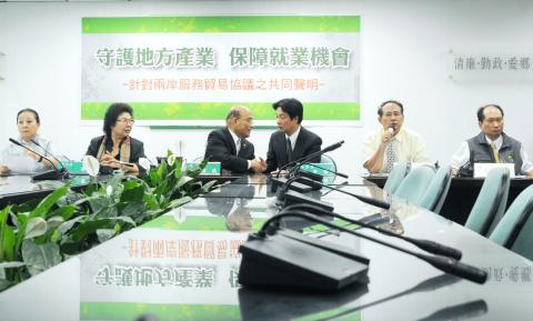 “The legislature, after a negotiation, has said that it will screen and vote on the pact clause by clause. If the Chinese Nationalist Party (KMT) pushes the pact through the legislature, local governments can take administrative measures to counter the agreement,” DPP Chairman Su Tseng-chang (蘇貞昌) said after the party’s weekly Central Standing Committee (CSC) meeting, which leaders of five of the six DPP-governed cities and counties attended.