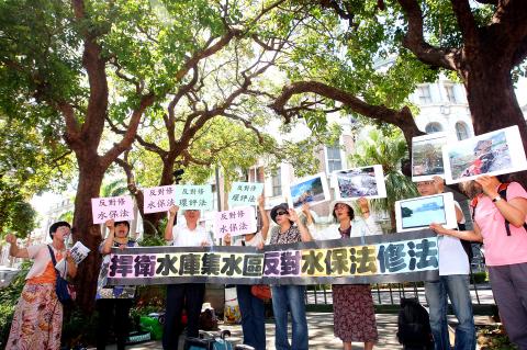 Taiwan Water Conservation Alliance spokesperson Chen Jiau-hua (陳椒華) said the proposed amendment will likely turn most of the reservoir catchment areas into ordinary hillside land, and development activities in these areas may threaten water quality and land safety.