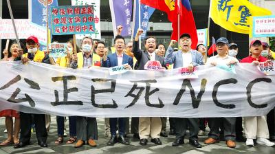 ‘BACKED BY ENEMY’: CTi News is one of the few channels promoting unification, the New Party chairman said, while pro-Taiwan groups called it a propaganda outlet Pan-blue camp supporters yesterday lodged a protest at the National Communications Commission (NCC) against what they say is a possible move by the government to shut down CTi News, adding that politics should not interfere with freedom of the press. Protesters included representatives from the New Party, the Blue Sky Action Alliance, the 333 Political Party Alliance and other pan-blue groups. “We stand here today because CTi News is one of the few media outlets in Taiwan that is still willing to give groups supporting unification with China a voice. If the news channel is gone, there would only be