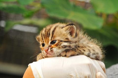 An exhibition aimed at raising public awareness of the conservation of the endangered leopard cats was launched yesterday at Taipei Zoo to coincide with the debut of Chi Pao (集寶), a female leopard cat cub that was sheltered by the Endemic Species Research Institute and later transferred to the zoo after being injured in a placement project.