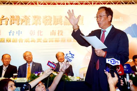 Foxconn Technology Group chairman Terry Gou (郭台銘) came under fire yesterday for saying on Monday that he would “invest more” in Greater Taichung if Taichung Mayor Jason Hu (胡志強) of the Chinese Nationalist Party (KMT) is re-elected, drawing criticism from Democratic Progressive Party (DPP) Chairperson Tsai Ing-wen (蔡英文) and student activist Chen Wei-ting (陳為廷).